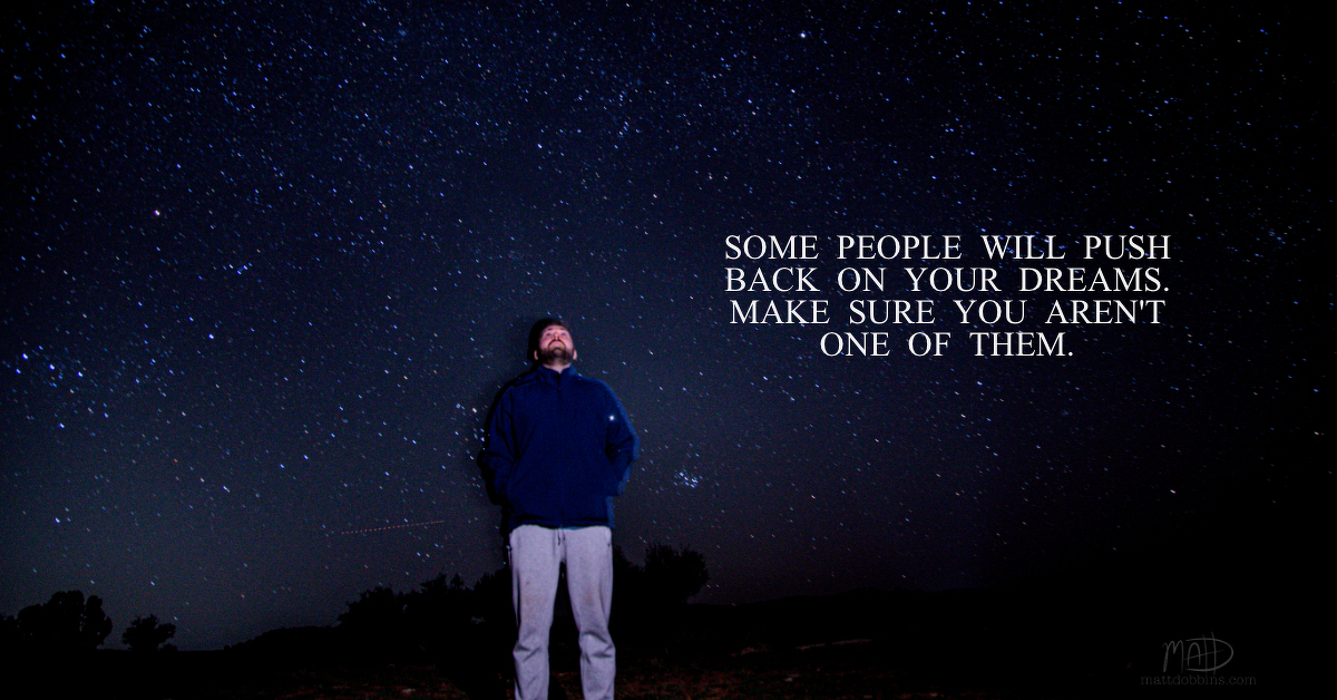 Some people will push back on your dreams. Make sure you aren’t one of them.